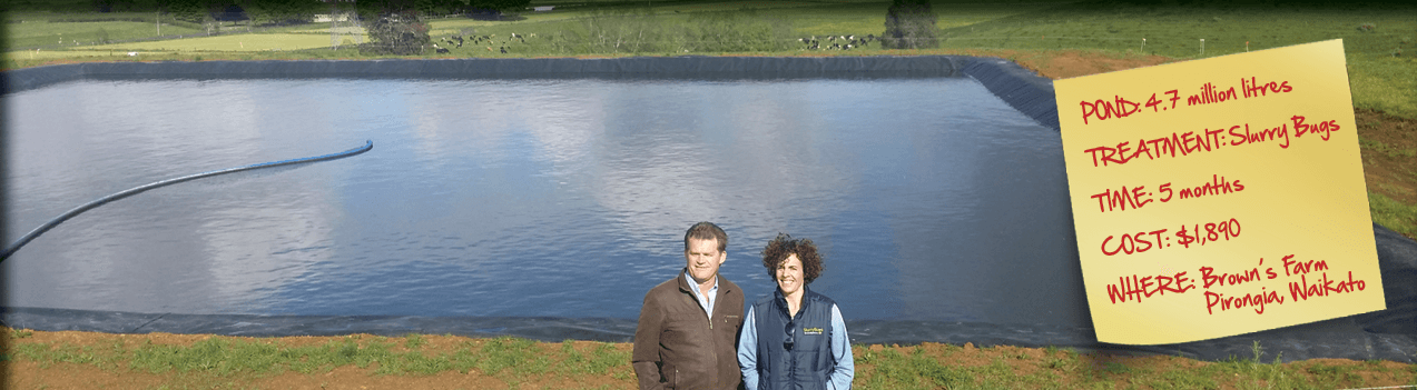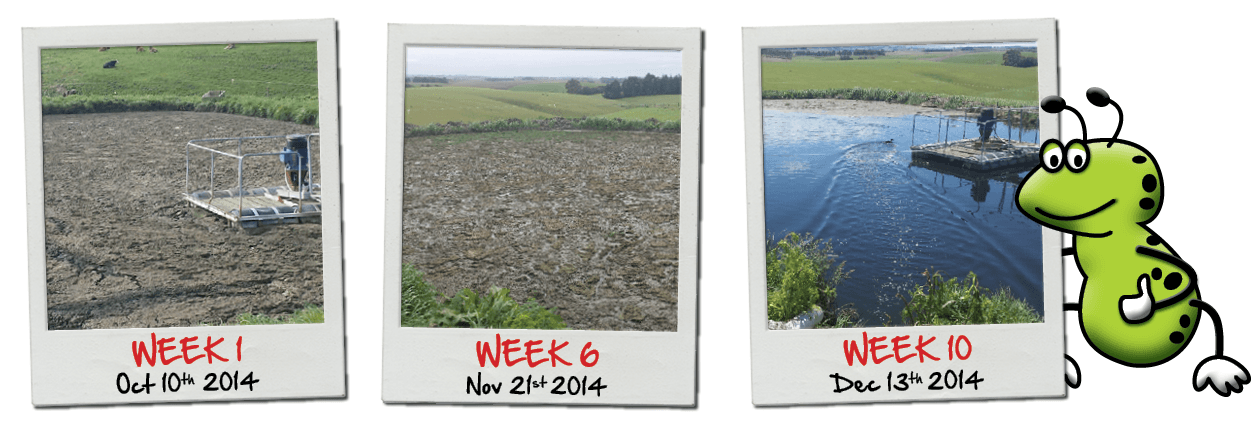 The Browns of Pirongia were open to the idea of STARTING their pond with SLURRY BUGS already introduced and in dominant numbers. Because they began their pond in a AEROBIC state, keeping it clear of crust and sludge was a simply job of SLURRY BUG maintenance. READ MORE